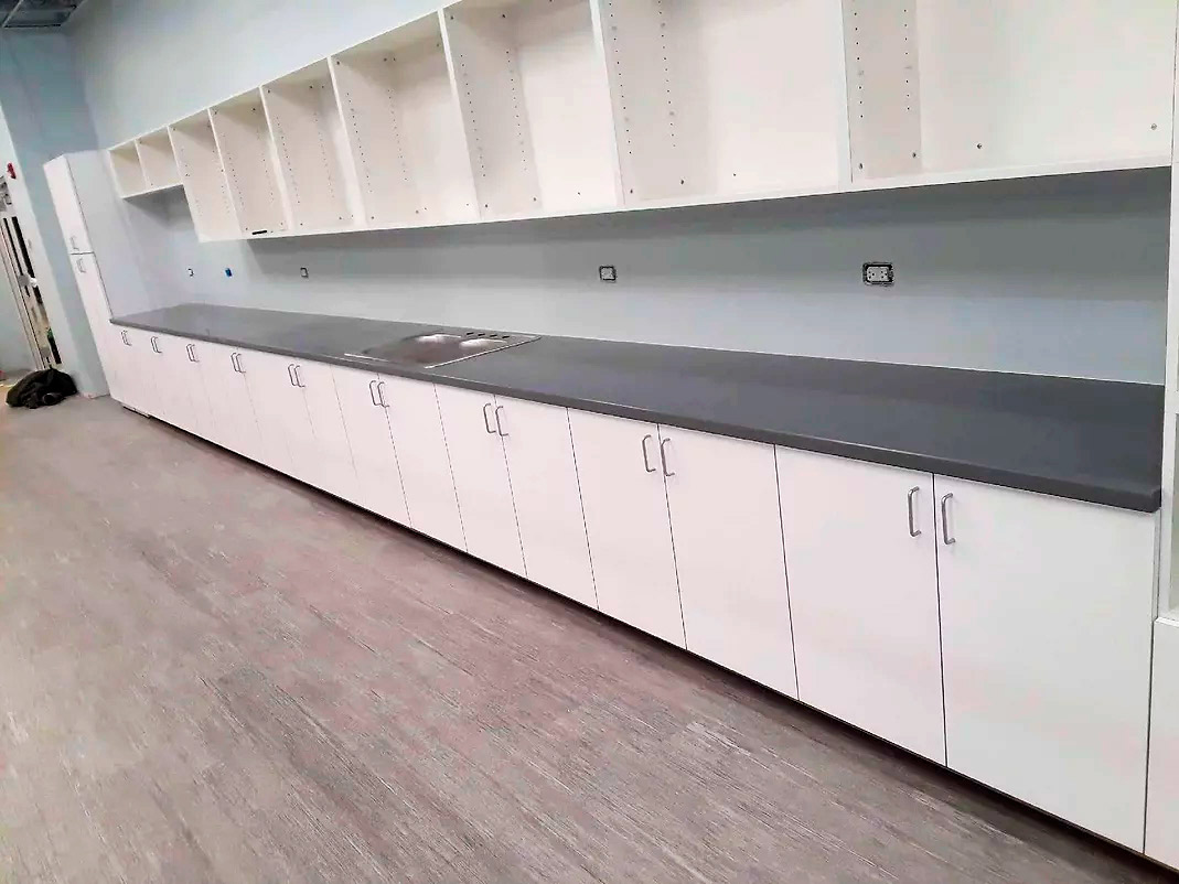 We can make any size or shape imaginable: radius cabinets, angled cabinets, any shape necessary for your needs.